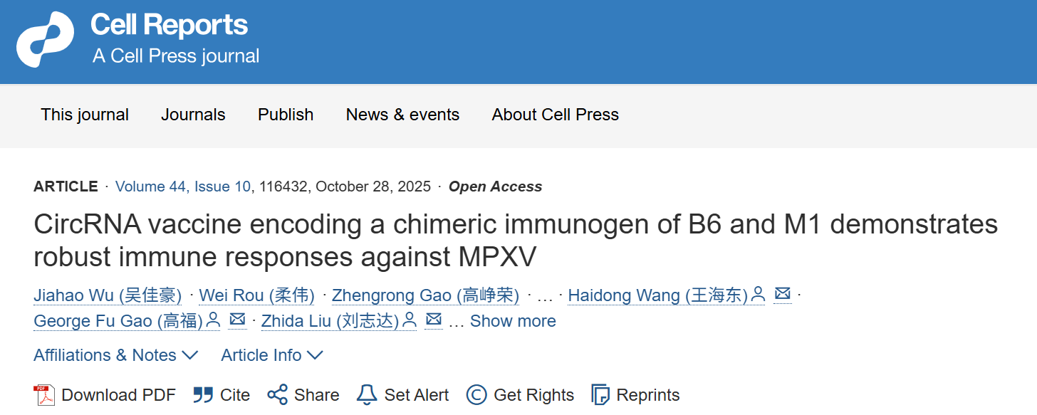 In today’s complex global public health landscape, every innovation in vaccine technology can become a decisive turning point in controlling infectious diseases. A recent study published in Cell Reports by a collaborative team from Shanxi Agricultural University, Peking University, Zhejiang University, and the Institute of Microbiology, Chinese Academy of Sciences, reports a circular RNA (circRNA) vaccine encoding a chimeric B6-M1 bivalent immunogen, demonstrating strong protective immunity against monkeypox virus (MPXV). This research highlights the potential of circRNA technology in vaccine development and offers a promising direction for vaccines targeting Orthopoxviruses, including smallpox.