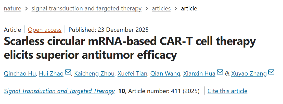 Recently, a landmark study published in Signal Transduction and Targeted Therapy offers an innovative solution to this dilemma. The research team developed a novel circularization strategy named Hi-Scarless-PIE, successfully synthesizing **scarless circular mRNA **(cmRNA), and applied it to the generation of CAR-T cells. The results demonstrate that these cmCAR-T cells exhibit not only **significantly enhanced persistence and potent cytotoxicity compared to linear mRNA-based CAR-T **(mCAR-T) but also achieve superior tumor clearance and a higher safety profile in vivo, paving a new path for the development of next-generation CAR-T therapies.